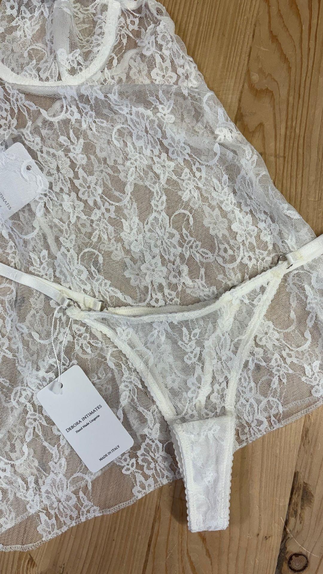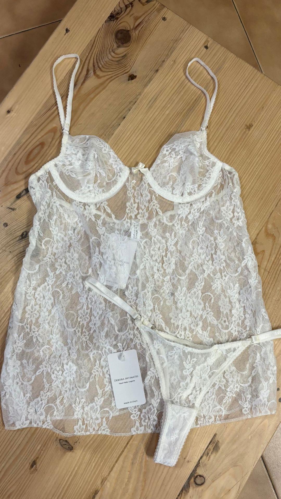 The matching lace thong echoes the same craftsmanship, creating a harmonious and refined ensemble.