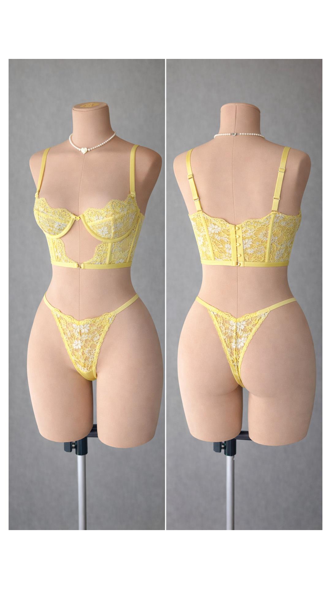 A delicate yellow lace that catches the light and gently embraces the skin.